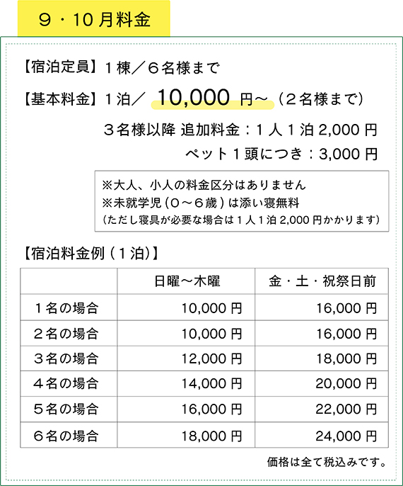 ※5名様以上でのご利用の場合はエアベッドをご用意いたします。