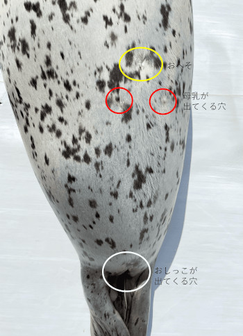 オスはこの穴からおしっこが出てきて、メスは母乳が出てきます。