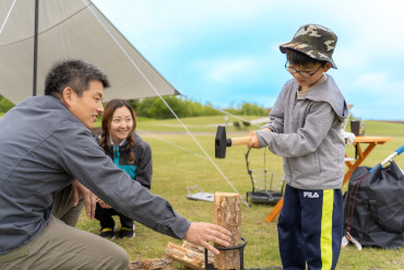 親子で楽しく薪割り体験(レンタル可能)も♪