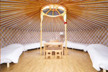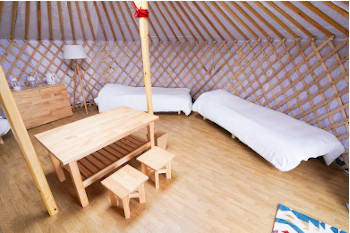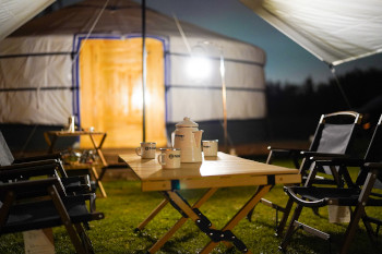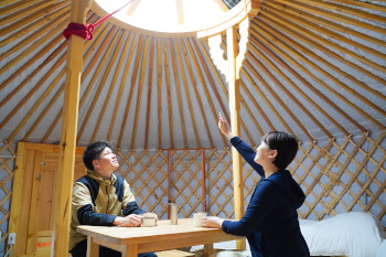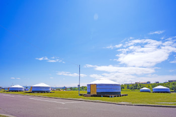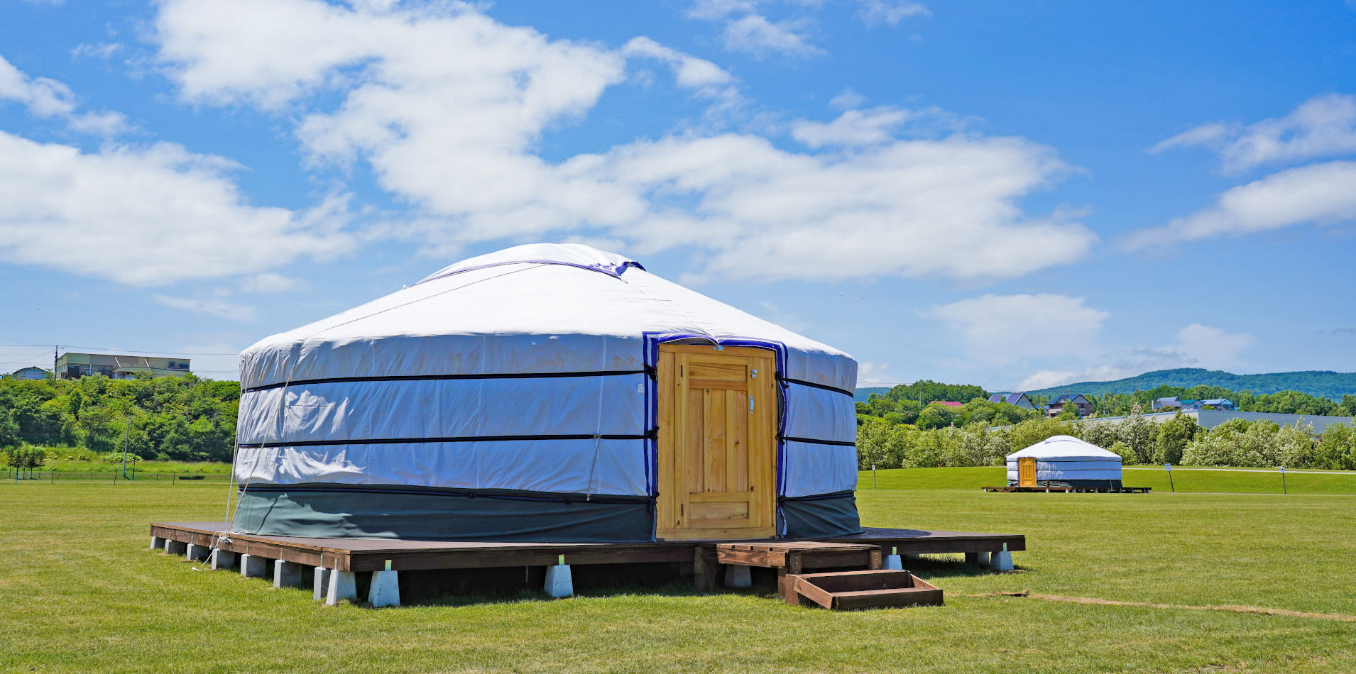 「ゲルキャンもんべつ」ではモンゴルの移動式住居「ゲル」に泊まり、手ぶらでキャンプをすることができます。