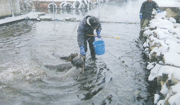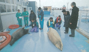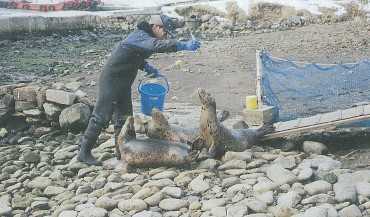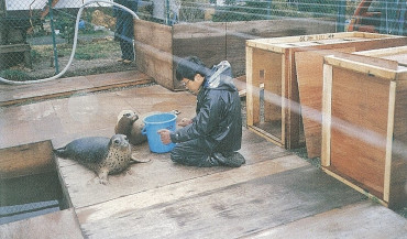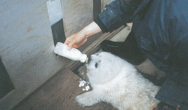 親からはぐれた子供には、イルカやアザラシ用の特別のミルクを飲ませて育てました。