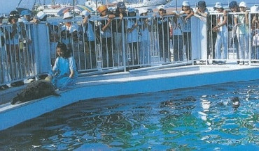 1987年紋別市大山町の民家を借り、その庭先に2m四方のアザラシのための池を堀り、コンパネによる仮設プールと飼育調教場を作るところからスタートしました。